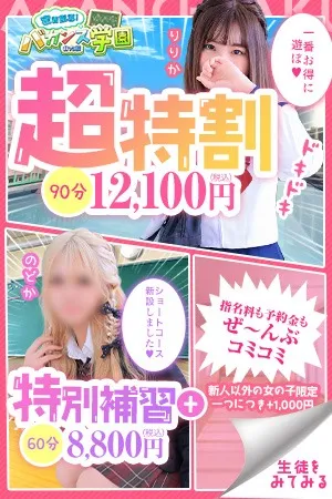 60分以上のコースが、事前予約にてまさかの半額!