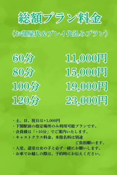 下関駅前エリア限定でご利用いただける、とってもお得な【総額プラン】が登場!